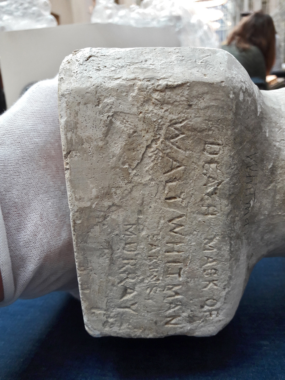 Small Bust of Walt Whitman made by Samuel Murray, 1892 (carved label)