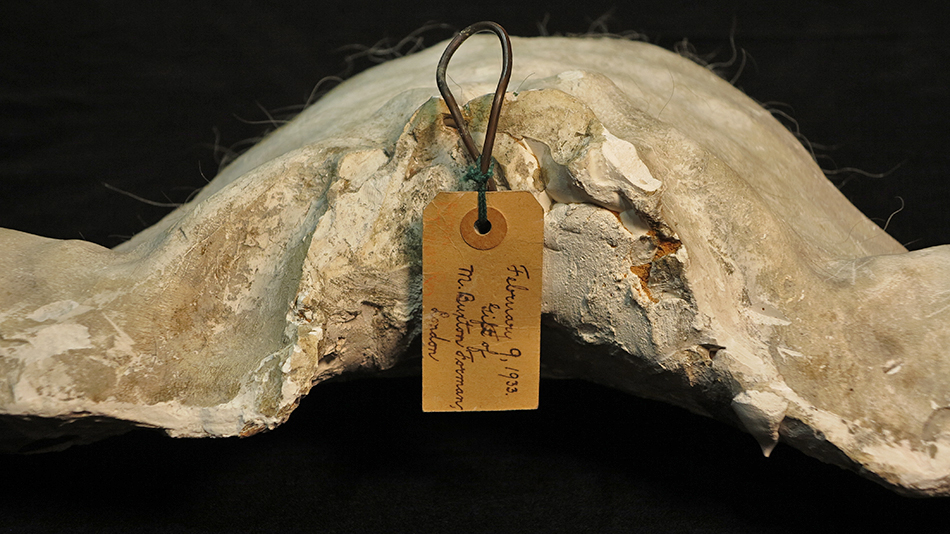 Whitman Death Cast of Torso w close-up label (view of Chest Hair in the cast)