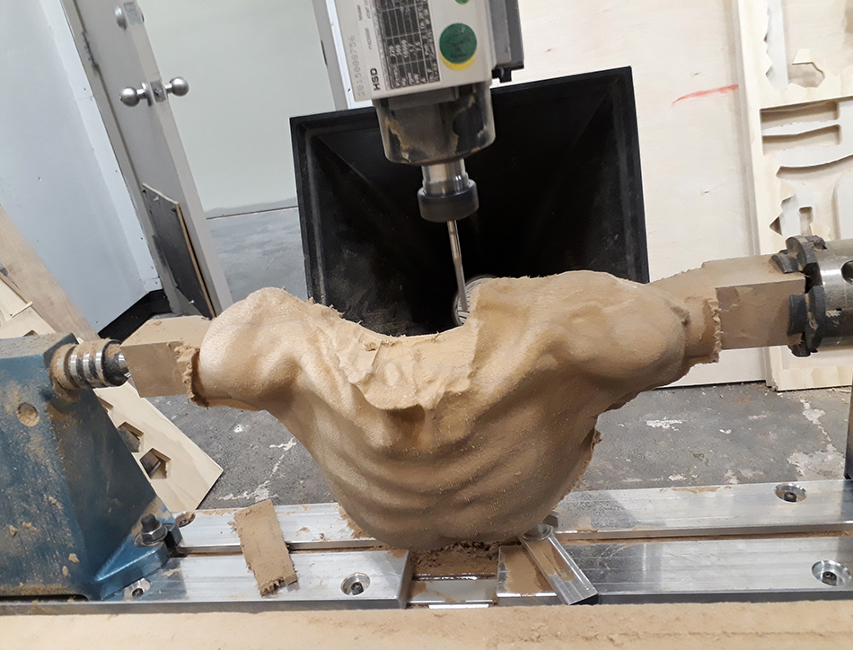 CNC carved MDF and wood sculptures created with 3D Models from Scans made from Whitman Death and Life Casts
