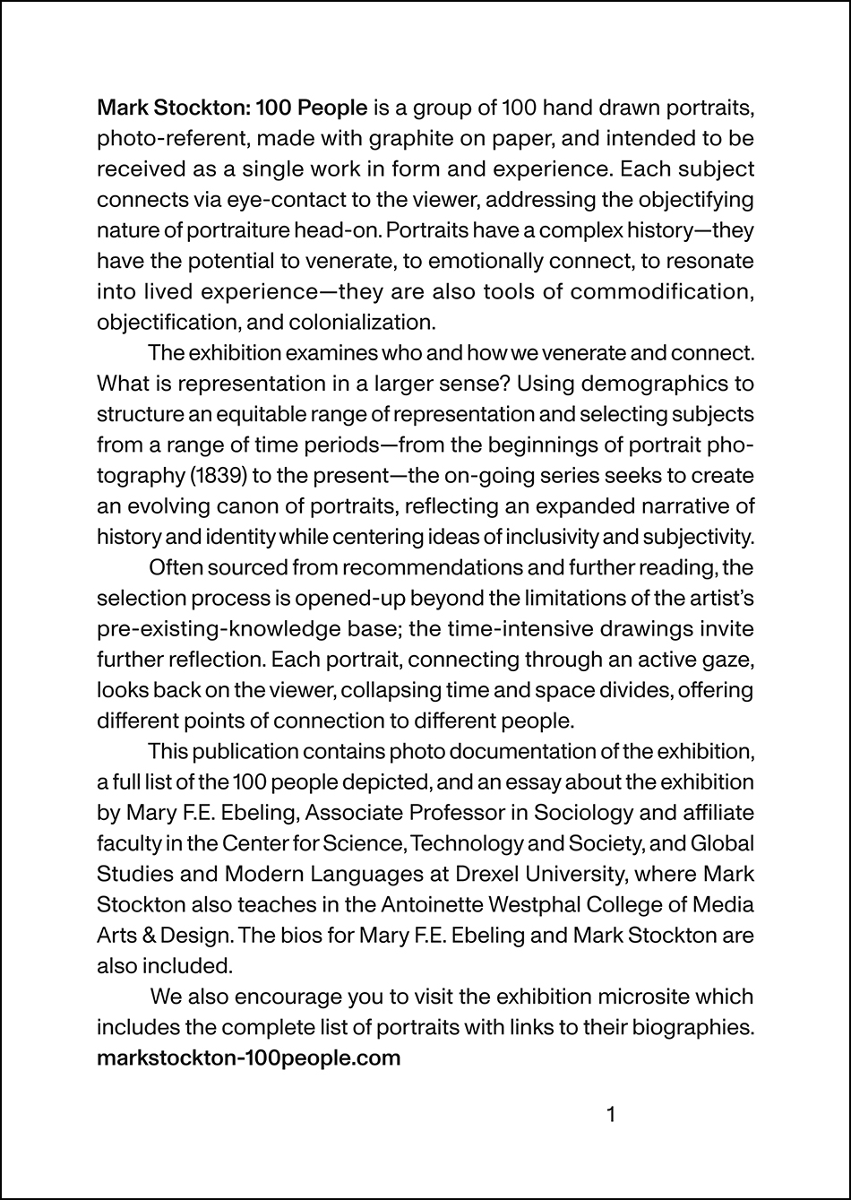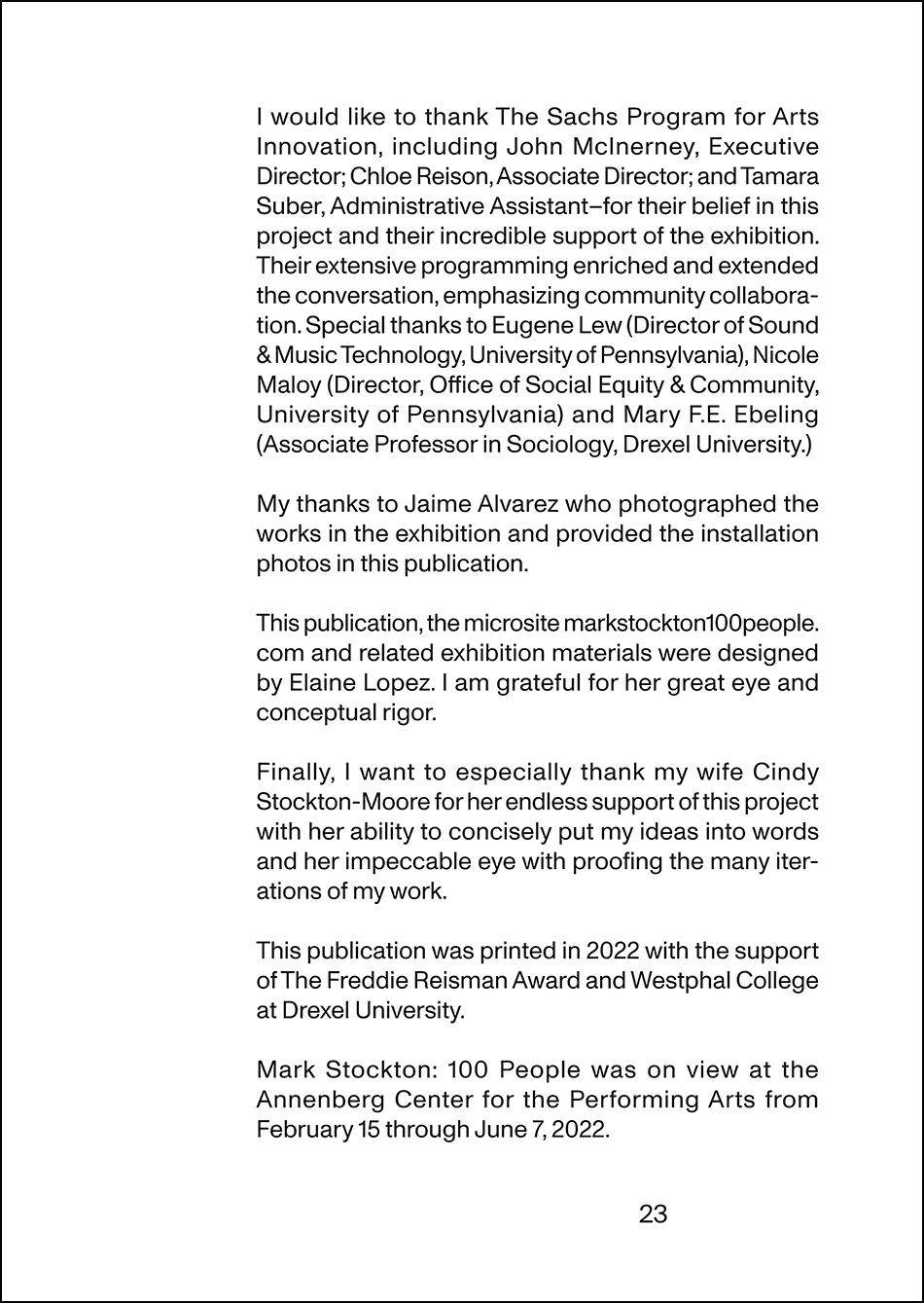 Mark Stockton: 100 People Publication Publication Design: Elaine Lopez Photography: Jaime Alvarez Essay: Representation and Slowing the Infinite Scroll by Mary F E Ebeling click above names or tittles to link to content or artist sites